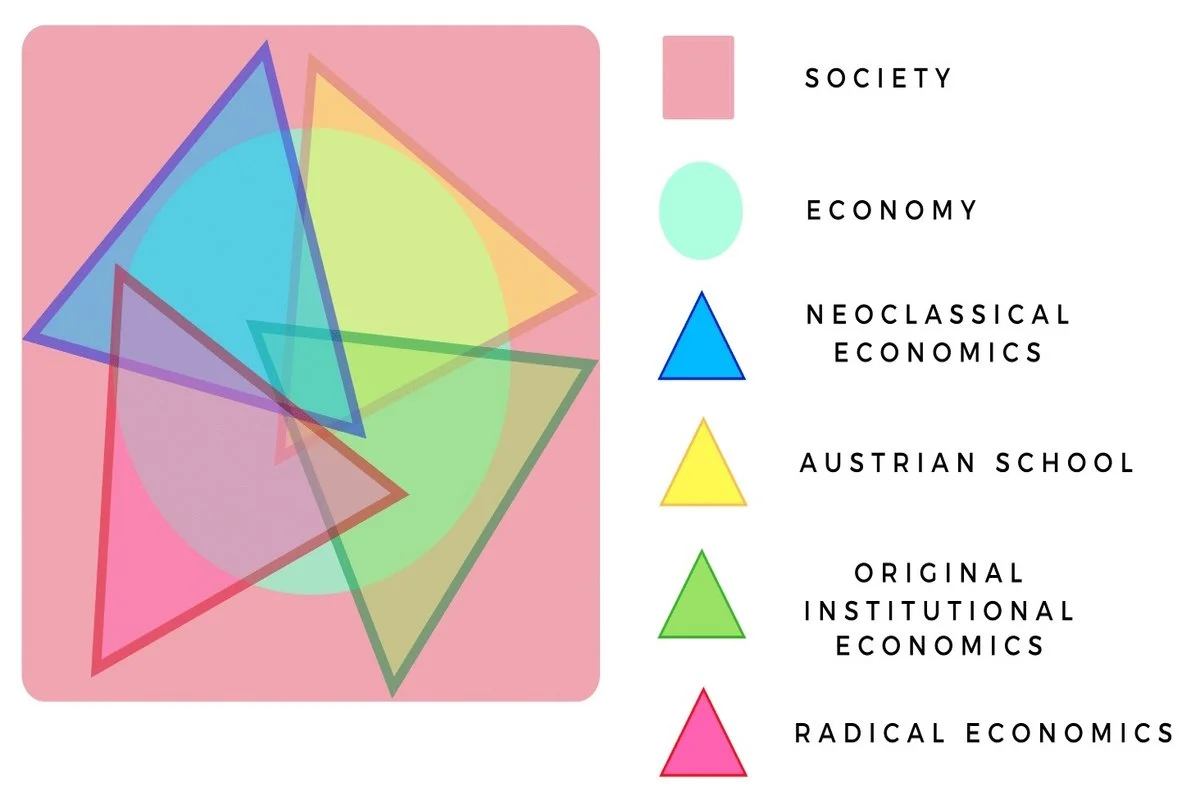 This report distinguishes the following economic approaches: Austrian school, Behavioral economics, Classical political economy, Complexity economics, Ecological economics, Feminist economics / Social economics, Neoclassical economics, Original institutional economics, Post-Keynesian economics, Radical economics. This categorization of economic approaches is further explained in this appendix file.